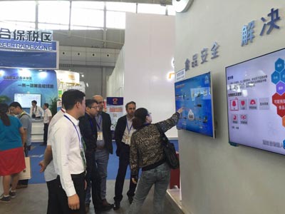 參展期間,在新疆電信食品安全解決方案展示區(qū),展位視頻循環(huán)播放北京智云達食品安全解決方案的詳細介紹,流程及適用對象、監(jiān)控系統(tǒng)。在電腦屏幕前,前來詢問解決方案系統(tǒng)的人絡繹不絕,更有感興趣的外國友人跨越語言障礙,耐心聽我們的技術(shù)人員一一做詳細解答。同時在參展區(qū)展示北京智云達自主研發(fā)生產(chǎn)的快速檢測儀、快速檢測試劑盒,來自伊朗的國際友人對儀器頗有好感,進行詳細咨詢。電視下方設置關注官方微信二維碼,方便興趣人員關注留言。
