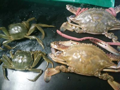 實驗樣品:水產市場購買的大閘蟹,河蟹,海蟹。