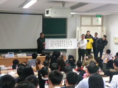 客戶傅留柱分享與北京智云達合作經歷,現場作詩,并附送著名書法家真跡