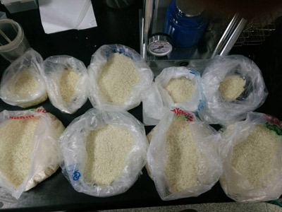 北京智云達技術工程師楊老師和王老師首先對不同大米樣品通過使用北京智云達自主研發生產的快速檢測產品:石蠟速測盒,黃曲霉毒素B1免疫金標速測卡;對大米中石蠟和黃曲霉毒素含量的檢測。