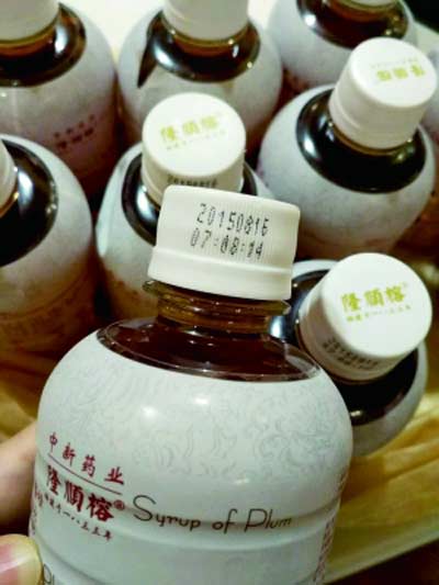 昨日,記者見到了葉女士購買的這批過期酸梅湯,白色塑料包裝外標(biāo)有“中新藥業(yè)隆順榕牌梅味酸梅湯果味飲料”,每瓶凈含量350克。瓶蓋側(cè)面所打印的生產(chǎn)日期顯示為2015年8月16日,而瓶體上注明的保質(zhì)期為12個月。照此計算,該飲料在2016年8月16日之后就已過期。記者從葉女士的購物小票看到,購物時間為2016年12月4日,也就是說,她購買時過期已將近三個半月。