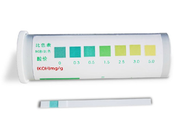 以紙片作為載體做成卡片形式,通過顯色劑與游離脂肪酸或過氧化物進(jìn)行反應(yīng),其在紙片上顯色的程度與游離脂肪酸或過氧化物的含量成正比,以此達(dá)到酸價(jià)或過氧化值的半定量檢測(cè)。