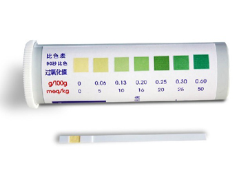3. 過氧化值測(cè)試紙的反應(yīng)計(jì)時(shí)視環(huán)境溫度而定,在表中規(guī)定的時(shí)間內(nèi)比色有效。