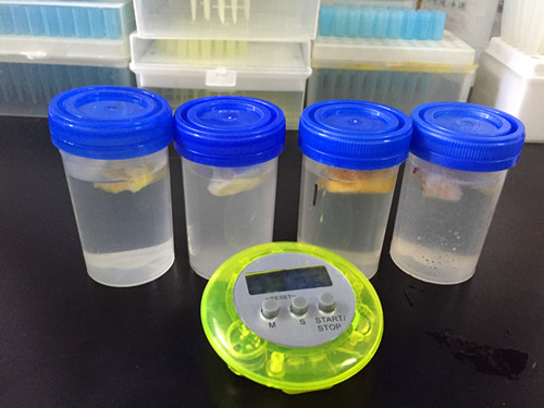 針對鄭先生的擔(dān)心,我們就先對水果干進行二氧化硫定性的分析,若有存在再進行定量分析。首先我們稱取每種凍干1g,剪碎加水49ml進行稀釋提取,靜置10min備用;