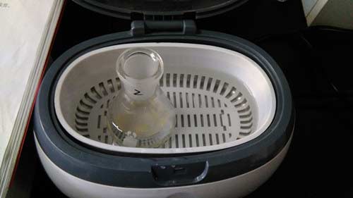 (1) 樣品處理:稱取粉碎的樣品1.0g,于50mL三角瓶中,加蒸餾水19mL,A溶液1mL,充分搖動,超聲5分鐘,靜置5分鐘,過濾,濾液備用。