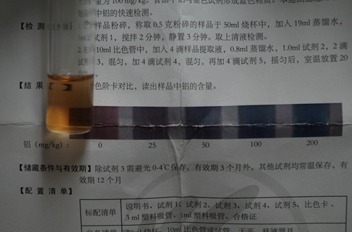 對比標準色階卡,讀出樣品中鋁的含量。結果顯示鋁合格,均符合國家標準。