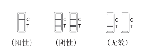 無效:位置C不顯示出條帶,則無論位置T顯示出條帶與否,該速測卡均判為無效,請重測。