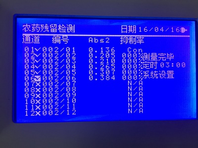 當果蔬樣品提取液對酶的抑制率為40~50%時,則表明被測樣品為可疑農殘超標樣品;當抑制率≥50%時,表示蔬菜中有高劑量有機磷或氨基甲酸酯類農藥存在,樣品為陽性結果。