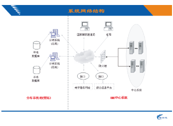 中心系統采取C/S結構,分布系統使用單機版,硬件設備低, 投資少,部署簡單。三方數據通過電子郵件上報,信息完整,安全,便捷,把復雜的業務流程簡單化,使的從未接觸此業務的人員能很快上手。總體結構圖如下圖: